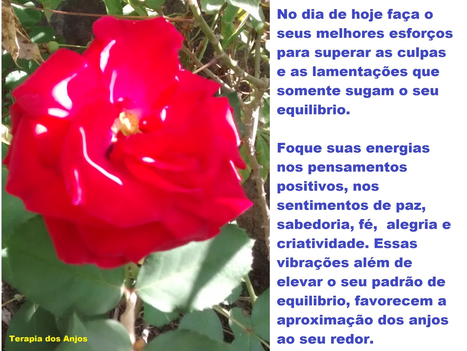 No dia de hoje faça seus melhores esforços para esquecer as lamentações, as injurias, as culpas e as energias negativas que somente sugam o seu equilibrio. Foque seus pensamentos, sentimentos, palavras e ações apenas nas ideias positivas, nos bons pensamentos, nos sentimentos de paz e alegria.